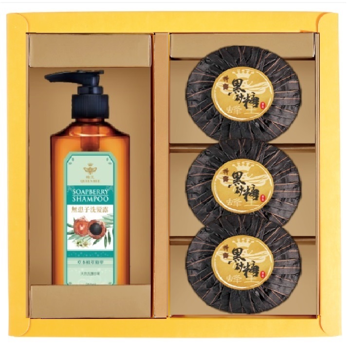 蜂王 沖繩黑砂糖香皂3入+檀香洗髮精禮盒 O1831