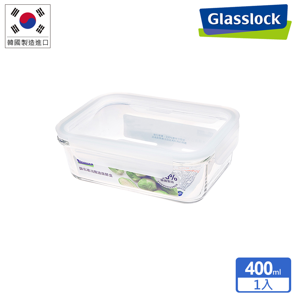 Glasslock MCRB-040F 長方形強化玻璃微波保鮮盒(大視窗蓋) 400ml