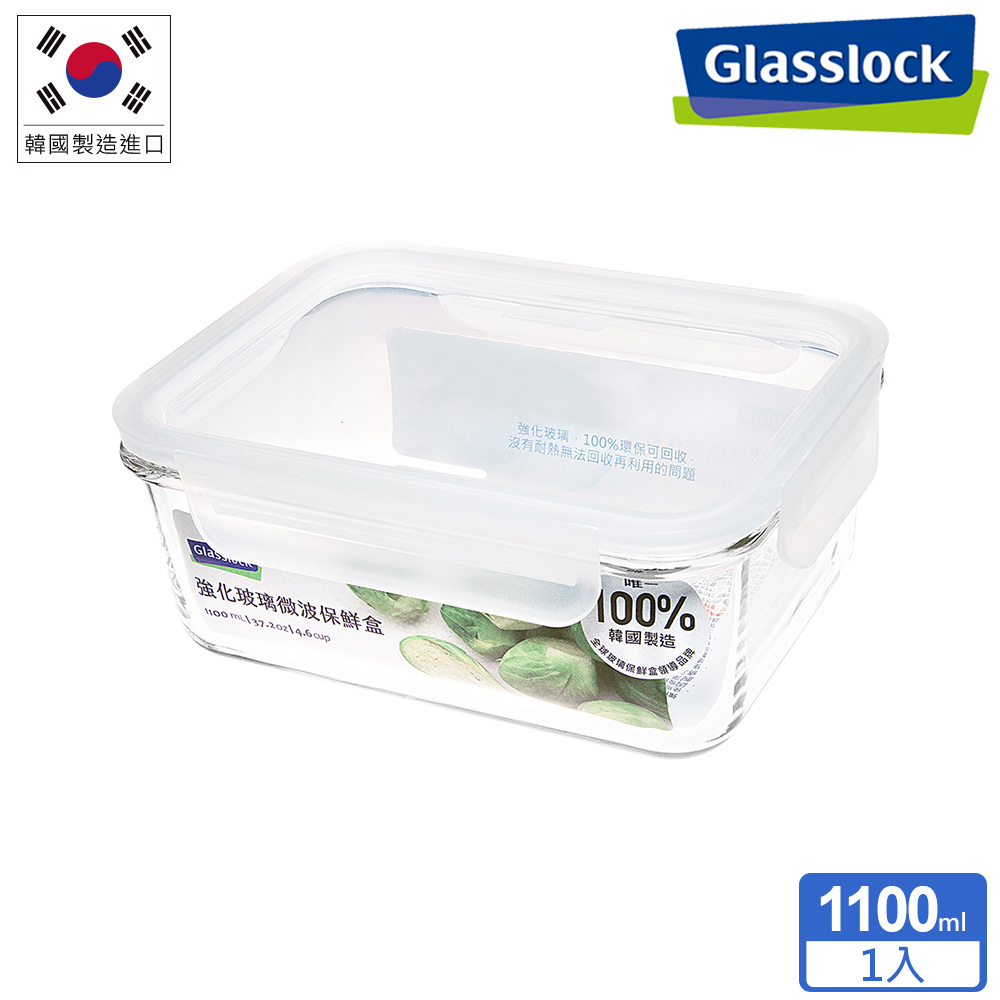 Glasslock MCRB-110F 長方形強化玻璃微波保鮮盒(大視窗蓋) 1100ml