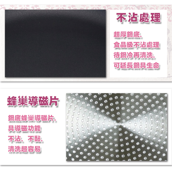 不沾處理,導熱均勻、儲熱性佳