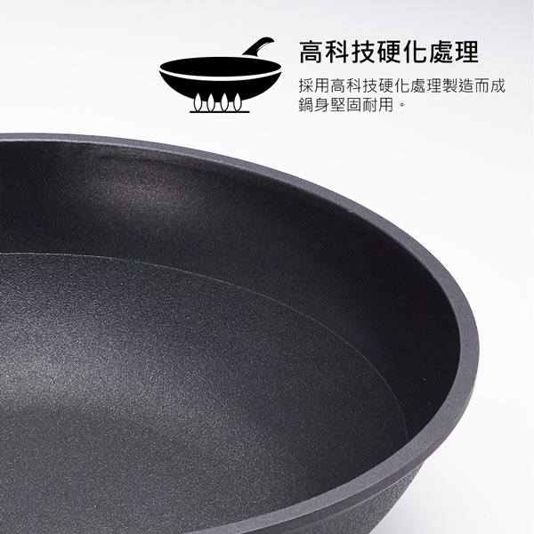產品特色: ★鍋把尾端有藍色/黑色兩款,隨機出貨請恕無法挑款 ★禁用鐵鏟、鐵刷、鋼絲球、菜瓜布 ★經過不沾處理而成,導熱均勻 ★台灣製造,在地品牌,品質有保障 ★一體成形無鉚釘設計,不會藏污納垢 ★產品通過SGS檢驗合格,榮獲ISO9001認證 ★台灣製造