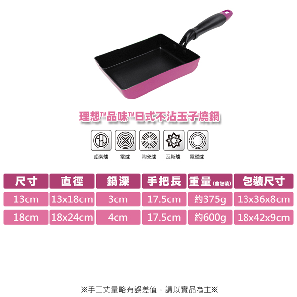 PERFECT 理想 【IKH_20213】 PERFECT 理想 理想品味日式不沾玉子燒鍋13cm 【IKH_20213】台灣製造