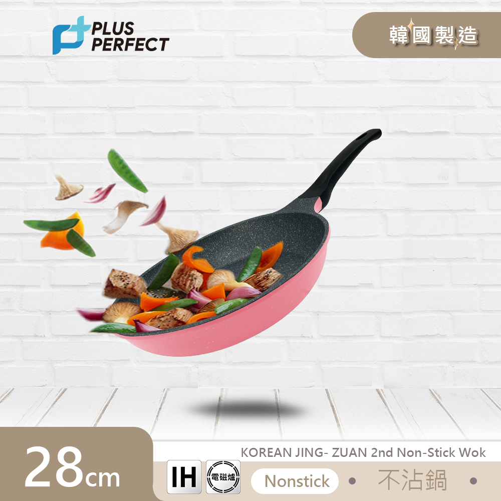 PERFECT 理想 韓國晶鑽2代不沾平底鍋28cm粉紅(無蓋)-韓國製造 【SJ-2535028-1】